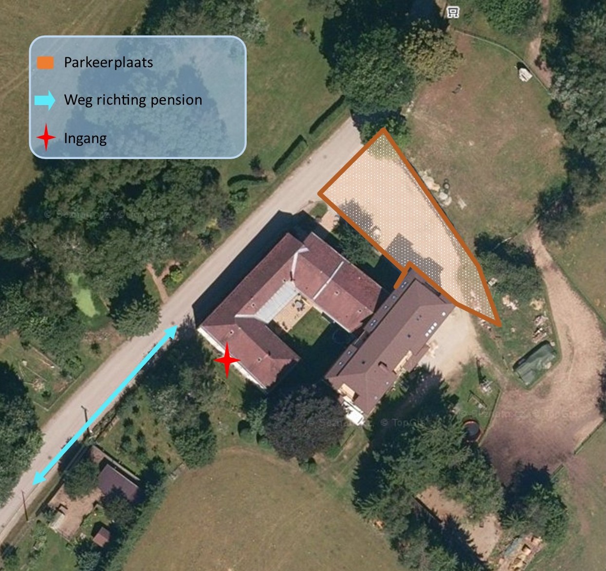 Graag verzoeken wij indien u met de auto bent de auto bij ons huis op de parkeerplaats te parkeren na het uitladen van uw bagage.